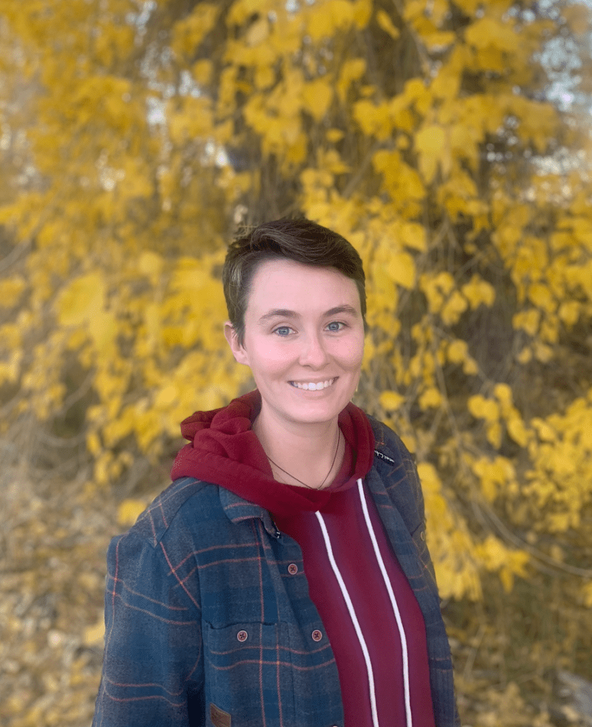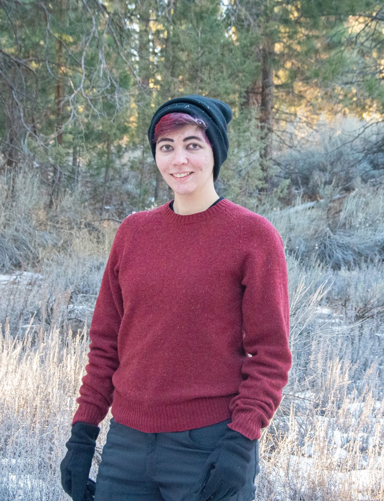 Emma Reich (they/she) is a queer non-binary Ecological and Environmental Informatics PhD student in the School of Informatics, Computing, and Cyber Systems at Northern Arizona University in Flagstaff, Arizona. They study plant ecophysiology and ecosystem water fluxes in drylands, and are currently working on an evapotranspiration partitioning model that uses both process-based and Bayesian algorithms. In 2019 they graduated from UC Berkeley with a BS in Molecular Environmental Biology and a concentration in Ecology, where they studied blue oak hydraulics and crustose coralline algae susceptibility to rising temperatures. In their free time, they trail run, mountain bike, climb, and write.